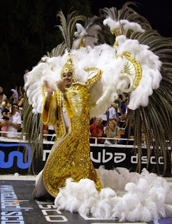 G- cuando yo lo conzoco a él, yo ya estaba en una etapa donde ya habia tenido la petición de parte de la comision de Papelitos de hacercar una carpeta. De hecho se presento una carpeta sea para el 2005 pero quizás pero me vieron joven, quizás vieron que era de afuera o quizás no les gustó la idea, que es posible tambien. Entonces a partir de esa epoca surge la idea que se podría hacer algunos vestuarios para alquilar. De hecho, encontré una parte muy importante en cuanto a clientes en lo que es la gente de Brasil, porque acá no hay vestuaristas de ese estilo, no en Buenos Aires, no que se especialicen en carnaval. Entonces llegué yo con algunas ideas interesantes, empece a moverme en un mercado de gente brasilera